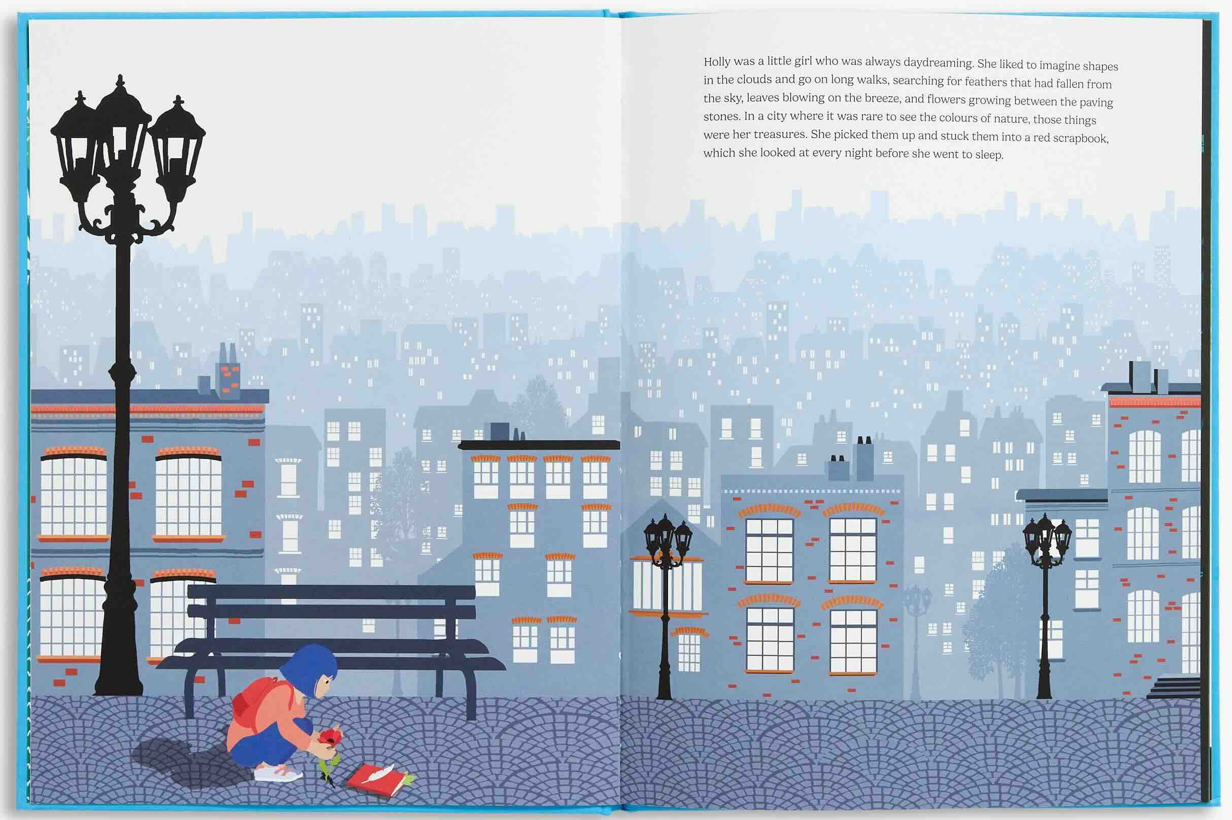 Holly loves to explore the city streets, gathering fallen leaves and stray flowers, tiny treasures that add a touch of brightness to her day. But one day, she discovers something truly extraordinary: a forgotten place, overflowing with life and colour, a hidden treasure that may just transform her dull, grey world forever.
